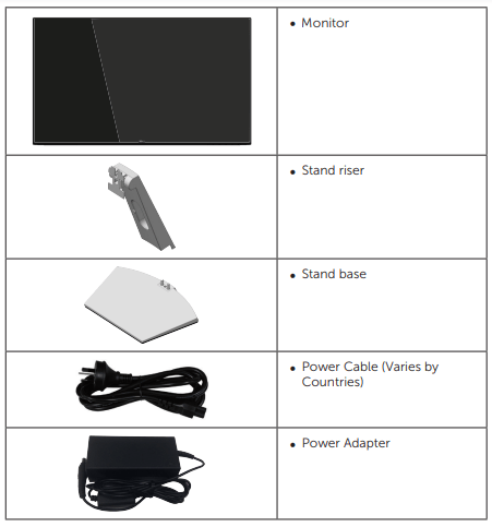 आपका मॉनिटर नीचे दिखाए गए घटकों के साथ जहाज करता है। सुनिश्चित करें कि आपके पास है